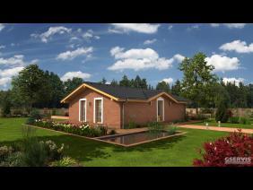 Interiér vévodí obývací pokoj s kuchyňským koutem (30,5 m2), ze kterého vstupujeme na terasu. Kuchyňský kout je doplněn o praktickou spíž (1,4 m2). Levá část domu nabízí 2 pokoje - ložnice a dětský pokoj (oba 12,9 m2). Komfort nabízí prostorná koupelna (4,9 m2) a samostatné WC (1,5 m2).