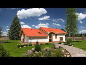 Interiér vévodí obývací pokoj s kuchyňským koutem (21,9 m2), ze kterého vstupujeme na terasu. Kuchyňský kout je doplněn o praktickou spíž (1,0 m2). Levá část domu nabízí 2 pokoje - ložnice (12,2 m2) a dětský pokoj (9,1 m2). Komfort nabízí prostorná koupelna s WC (7,3 m2).