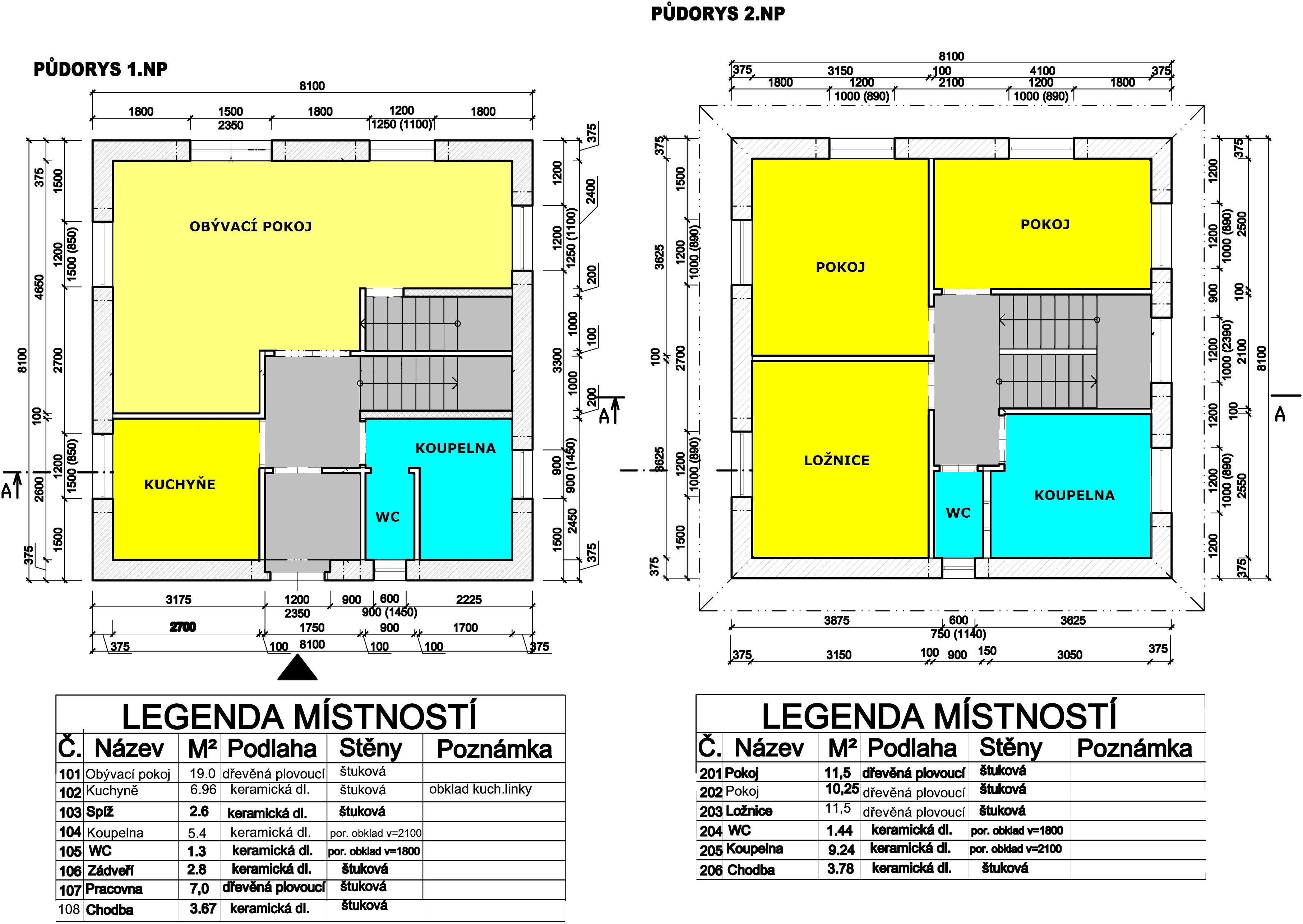 2. nadzemní podlaží nabízí tři pokoje / ložnice (11,5 m2, 11,5 m2 a 10,25 m2). Ke komfortu druhého podlaží přispívá druhá prostorná koupelna (9,24 m2) a samostatné WC(1,44 m2).